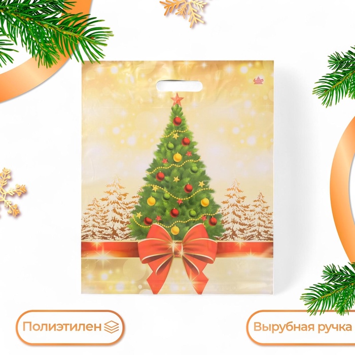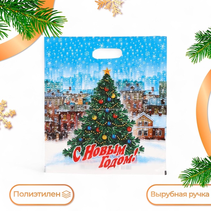 Пакет подарочный новогодний «Городская ёлка», полиэтиленовый с вырубной ручкой, 47×40 см