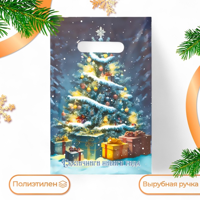 Пакет подарочный новогодний «Сказочного Нового Года», полиэтиленовый с вырубной ручкой, 20×30 см, 30 мкм
