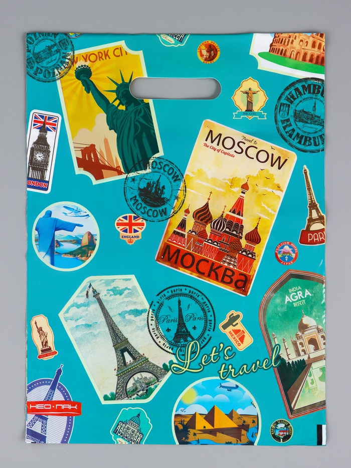 Пакет «Путешествие», полиэтиленовый с вырубной ручкой 30×40 см, 60 мкм