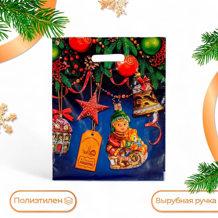 Пакет подарочный «Новогодние игрушки», полиэтиленовый с вырубной ручкой, 38×47 см, 60 мкм
