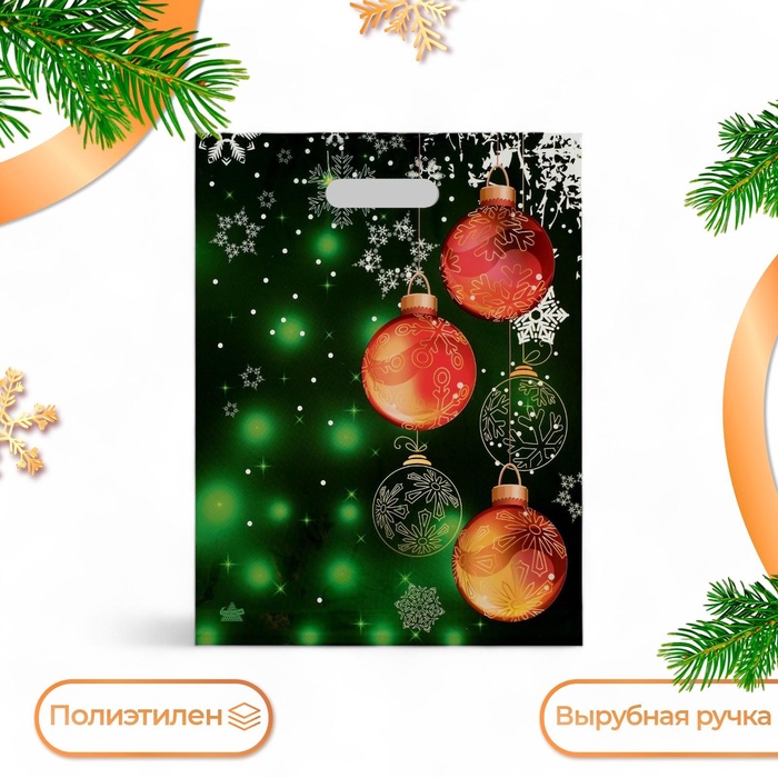 Пакет «Шары в зеленых огнях», полиэтиленовый с вырубной ручкой, 40×31 см