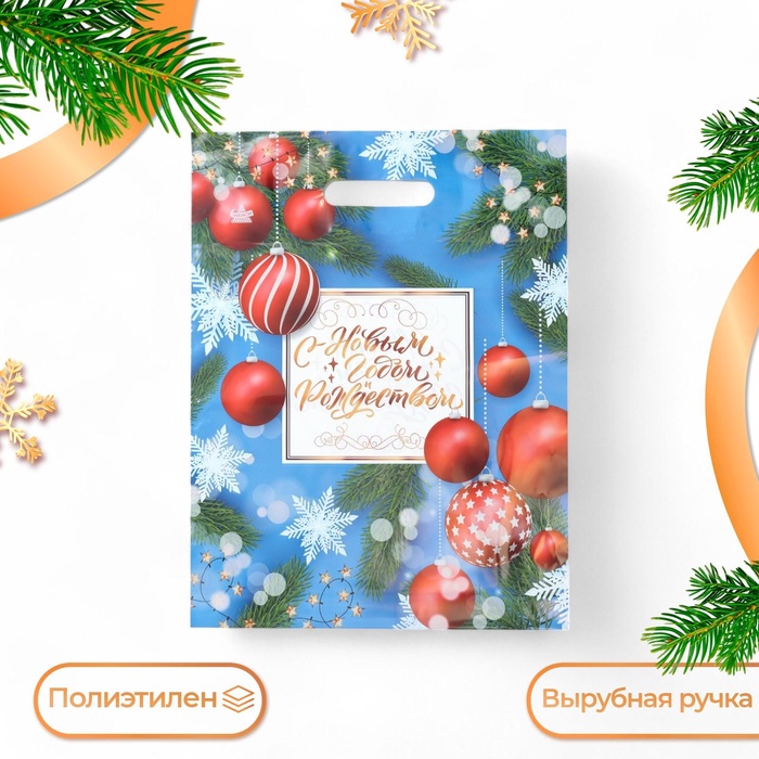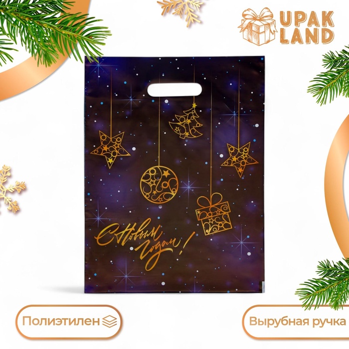 Пакет «С Новым Годом», полиэтиленовый с вырубной ручкой, 30×40 см