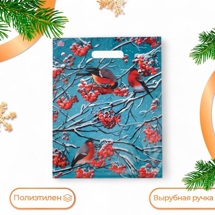 Пакет «Снегири на рябине», полиэтиленовый с вырубной ручкой, л 40×31 см