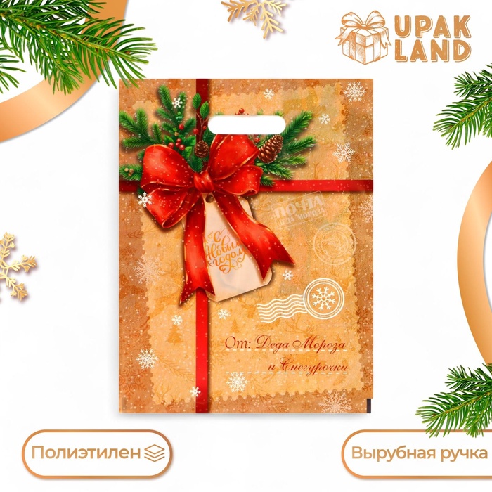 Пакет «Послание от деда мороза и снегурочки», полиэтиленовый с вырубной ручкой, 30×40 см