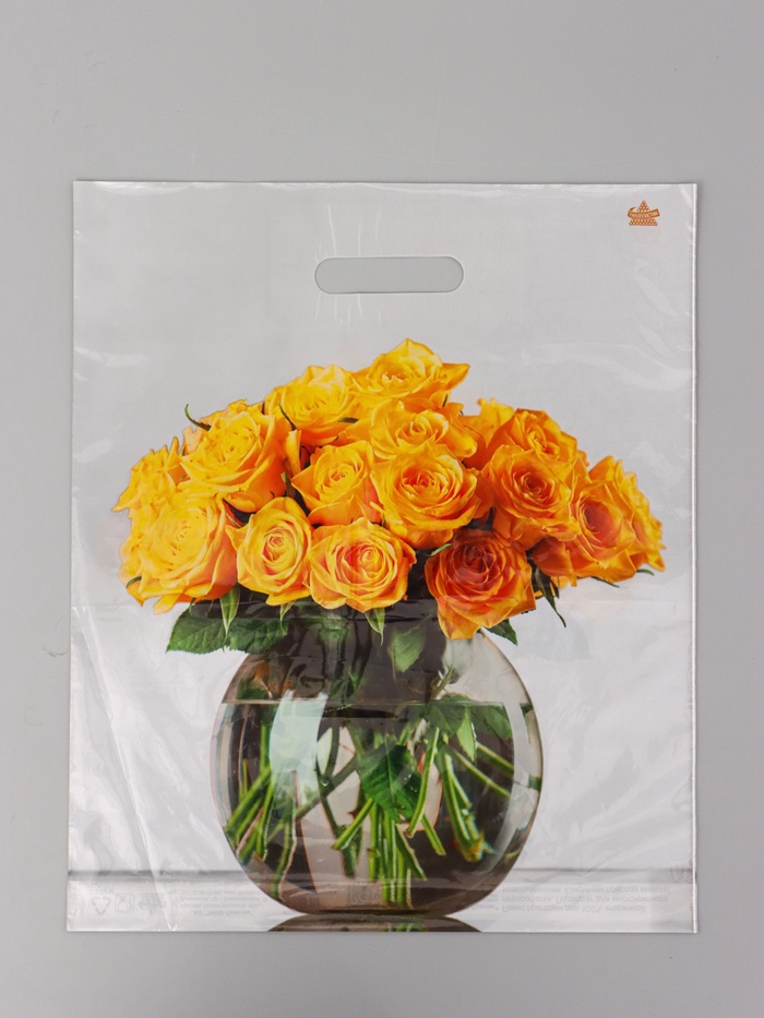 Пакет подарочный «Аромат роз» полиэтиленовый, с пластиковыми ручками, 35×36 см 85 мкм