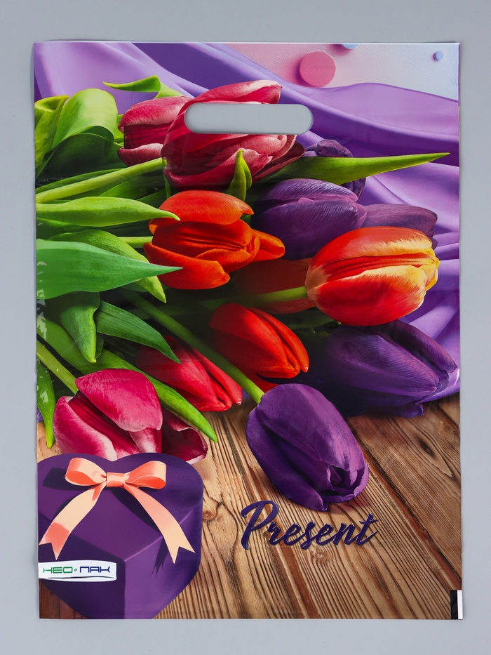 Пакет подарочный «Райские тюльпаны» полиэтиленовый, с петлевой ручкой, 50×60 см 60 мкм
