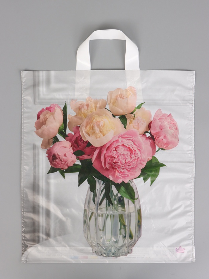 Пакет подарочный «Роскошные пионы» полиэтиленовый, с петлевой ручкой, 40×36 см 37 мкм