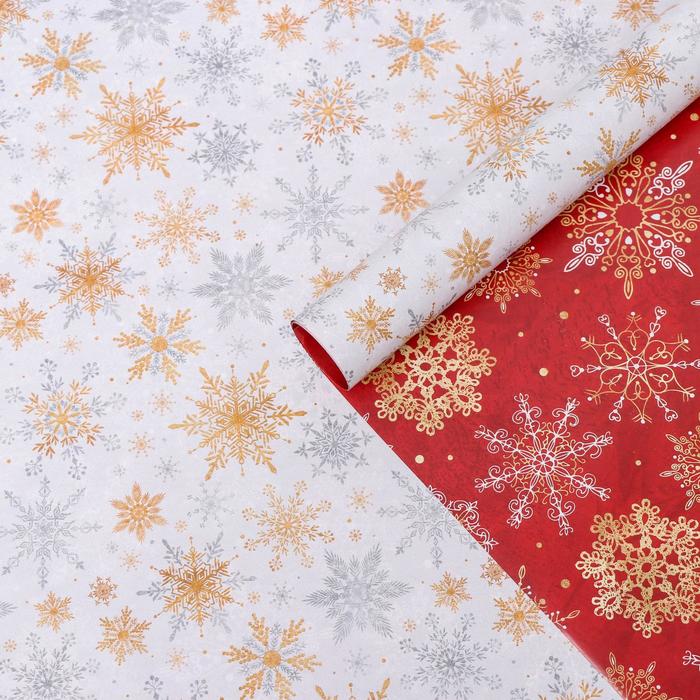 Бумага упаковочная новогодняя глянцевая двусторонняя «Волшебные снежинки», 70 х 100 см