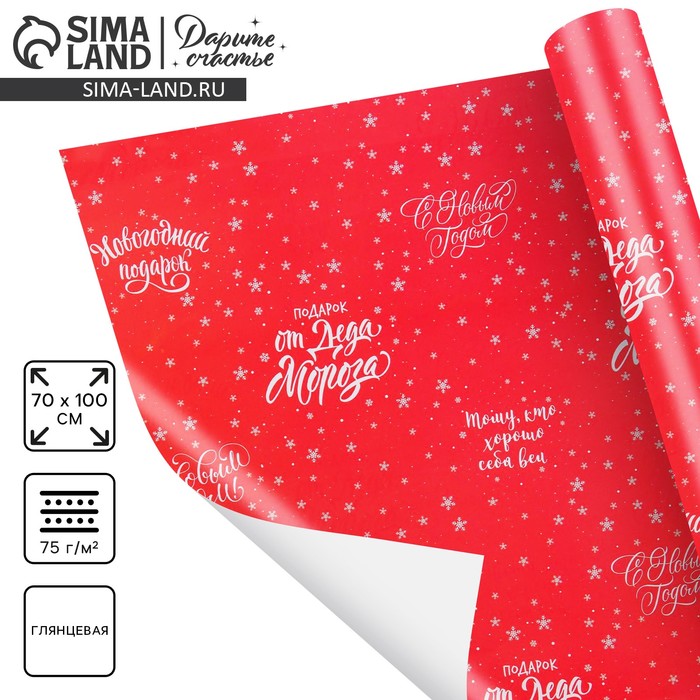 Упаковочная бумага на Новый год «От Деда Мороза», 70 х 100 см, глянцевая