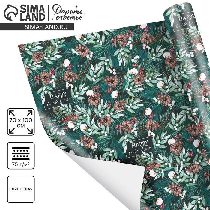 Упаковочная бумага на Новый год «Зимний хлопок», 70 х 100 см, глянцевая