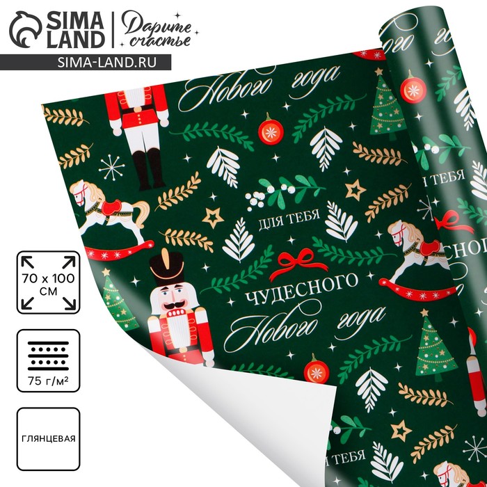 Упаковочная бумага на Новый год «Щелкунчик», 70 х 100 см, глянцевая