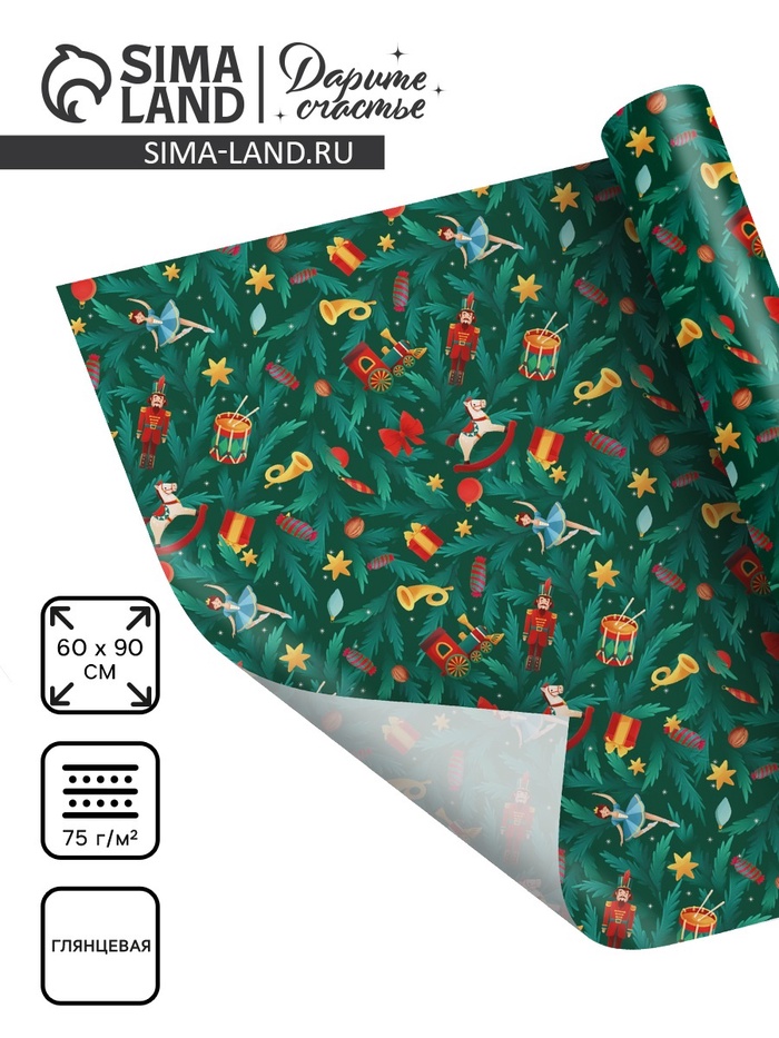Бумага упаковочная новогодняя глянцевая «Щелкунчик», 60 х 90 см