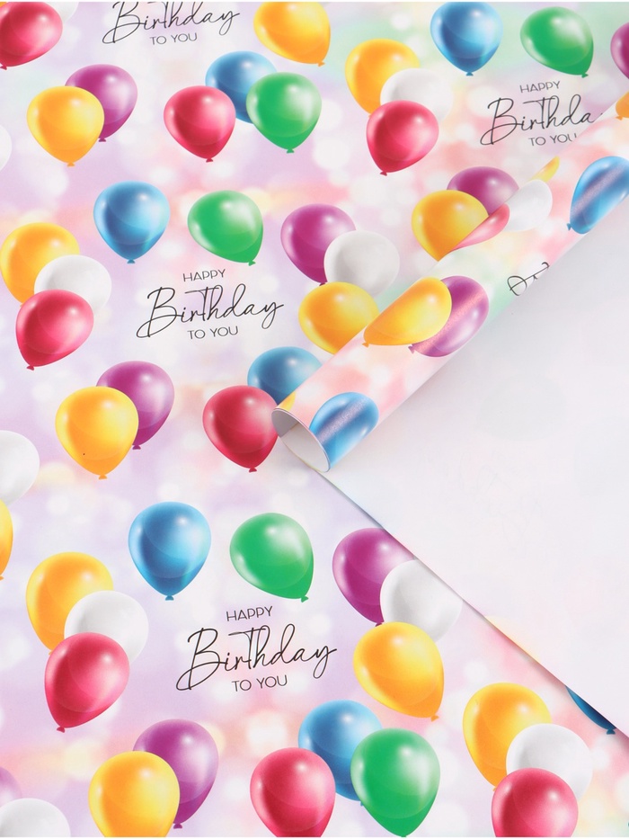 Бумага упаковочная глянцевая Happy Birthday, 50×70 см