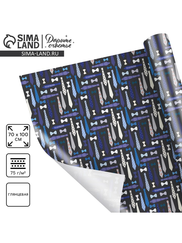 Бумага упаковочная глянцевая «Галстуки», 70 х 100 см