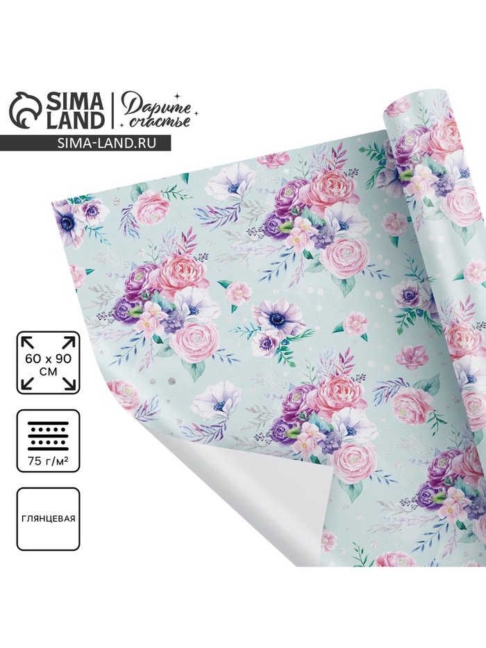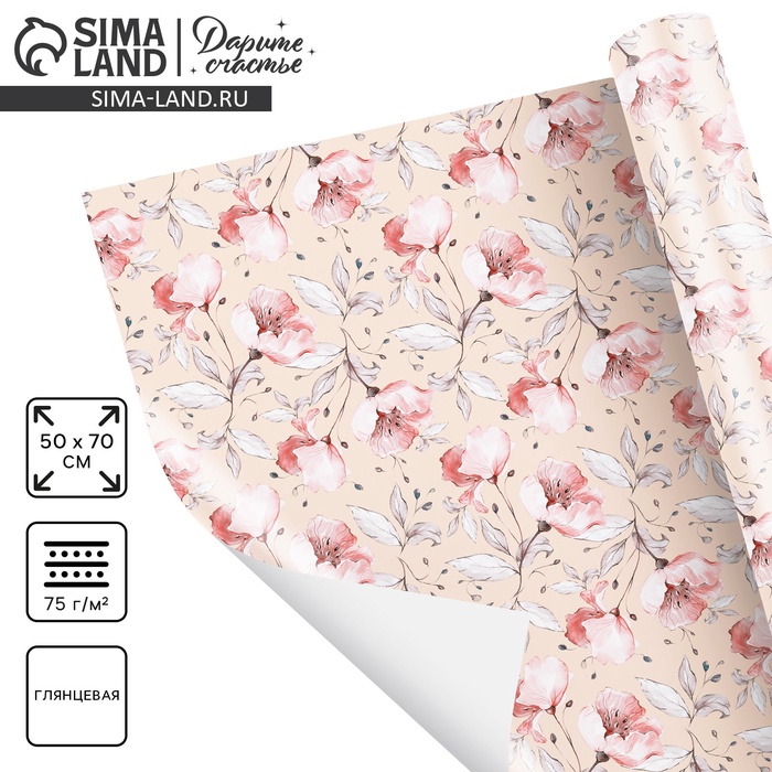 Бумага упаковочная глянцевая «Нежные цветы», 50 х 70 см
