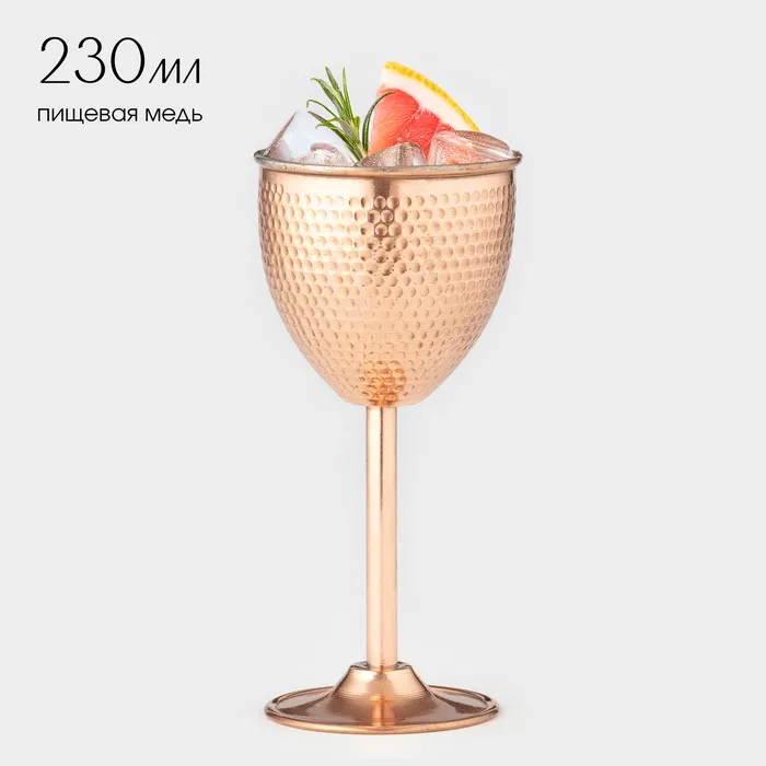 Бокал медный, 230 мл, d=8 см, h=17 см, чеканка, 1 сорт