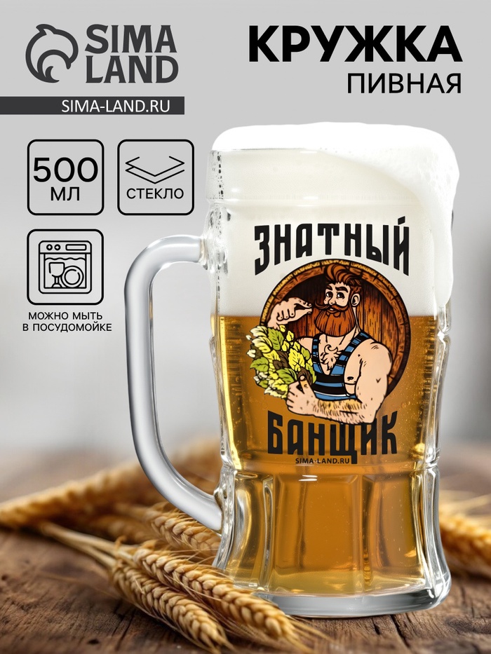 Кружка пивная стеклянная «Знатный банщик», 500 мл