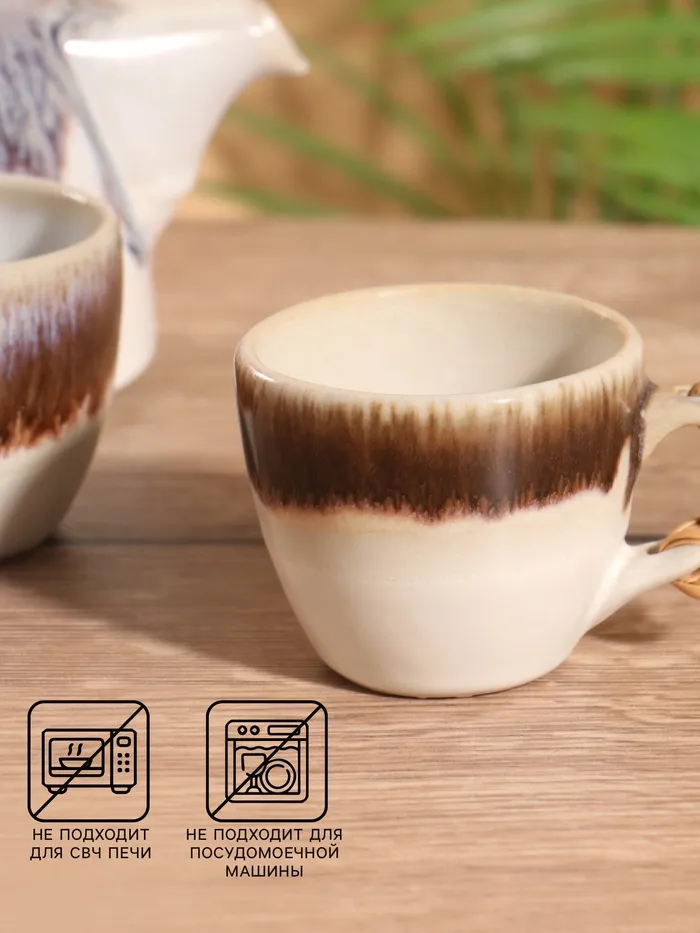 Набор для чаепития «Светлый утюжок», чайник, 2 чайные пары, керамика