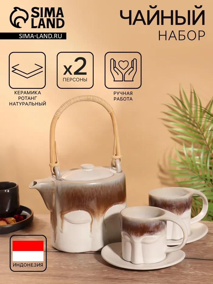 Набор для чаепития «Старинный обычай», чайник, 2 чайные пары, керамика