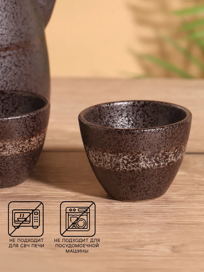 Набор для чаепития «Рахмат», чайник, 2 стакана, керамика, чёрный
