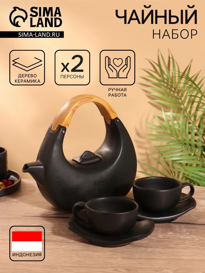 Набор для чаепития «Чёрный глаз», чайник, 2 чайные пары, керамика