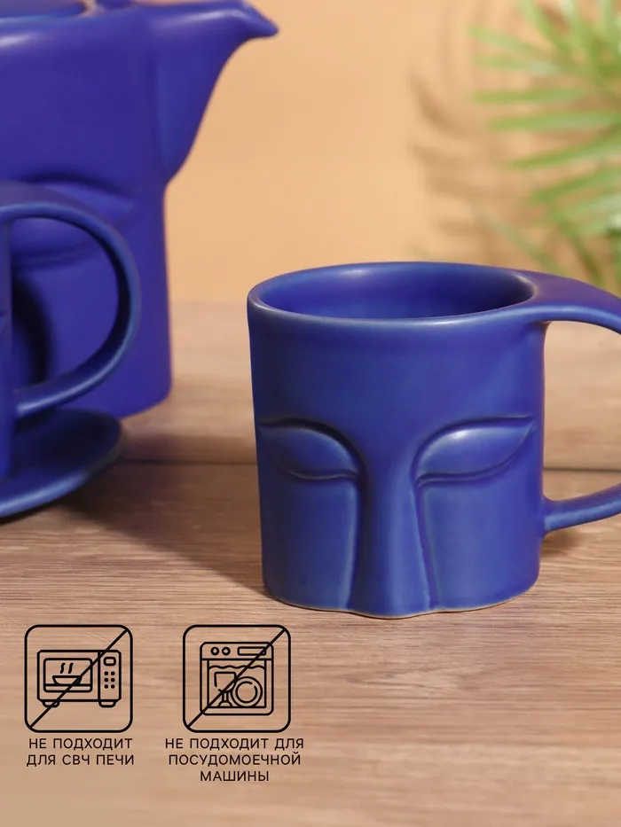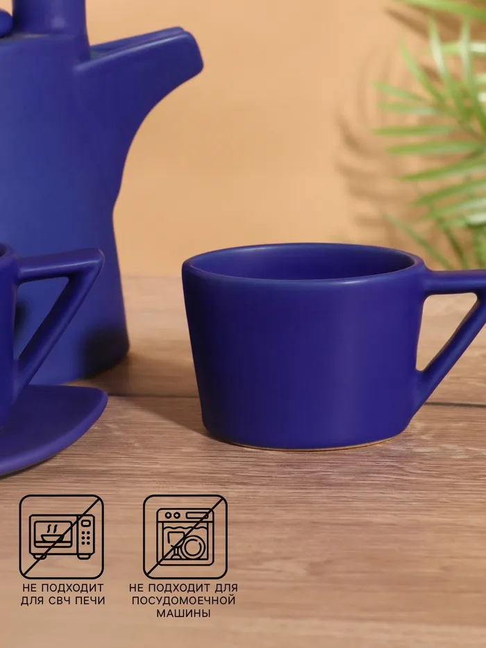 Набор для чаепития «Старинный обычай», чайник, 2 чайные пары, керамика, синий