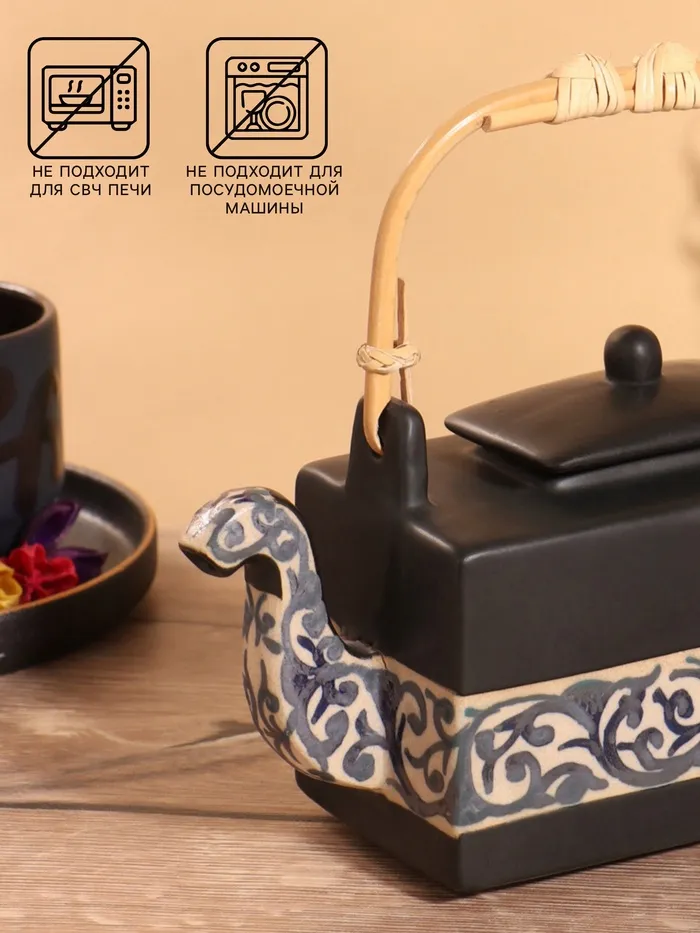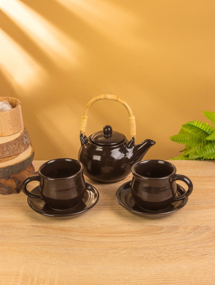 Набор для чаепития «Тёмный утюжок», чайник, 2 чайные пары, керамика