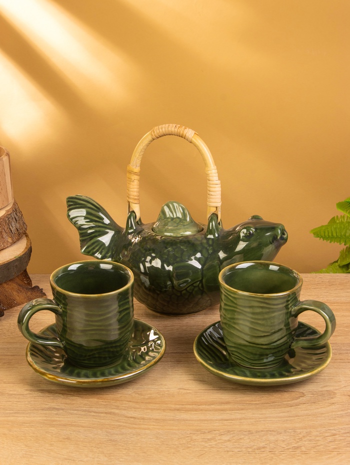 Набор для чаепития «Аху», чайник, 2 стакана, керамика, зелёный