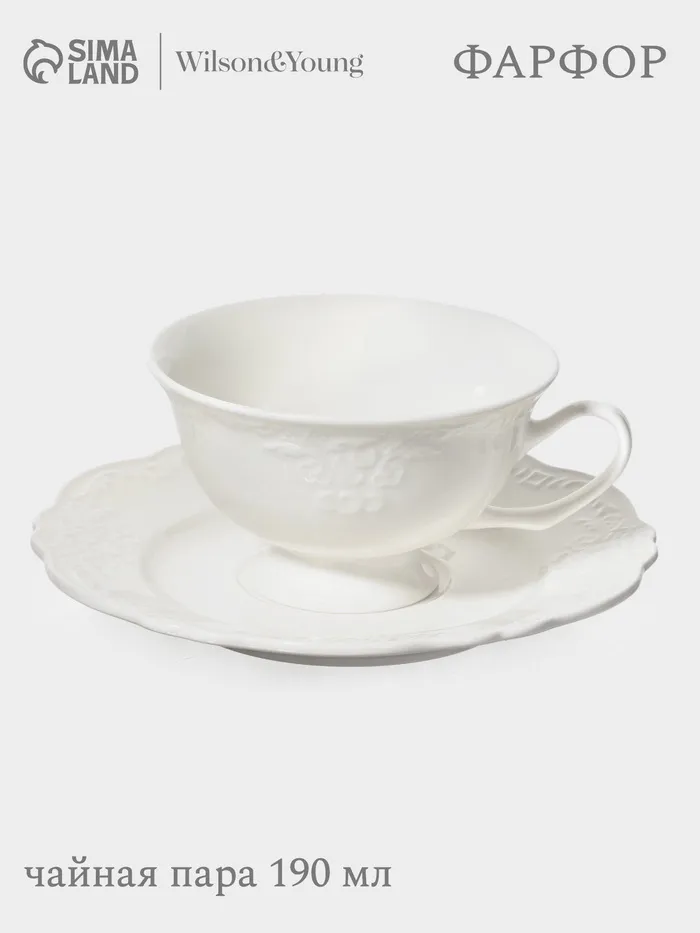 Чайная пара WY Venecia, 2 предмета: чашка 190 мл, блюдце, фарфор, белая