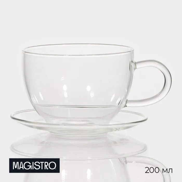 Чайная пара Magistro «Невесомость», 2 предмета: чашка 200 мл, блюдце d=11 см, стекло, прозрачная