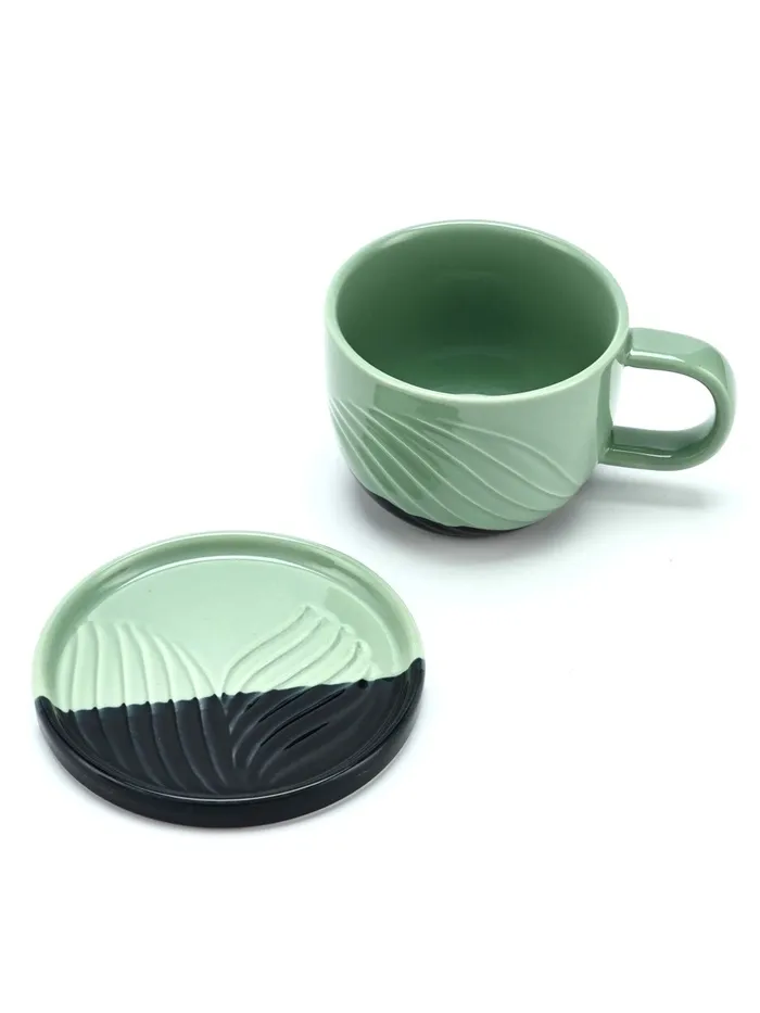 Чайная пара керамическая «Авокадо»: кружка 100 мл, блюдце 14×10 см