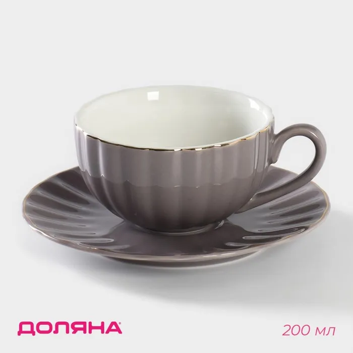 Чайная пара Доляна «Вивьен», 2 предмета: чашка 200 мл, блюдце d=15 см, фарфор, серая
