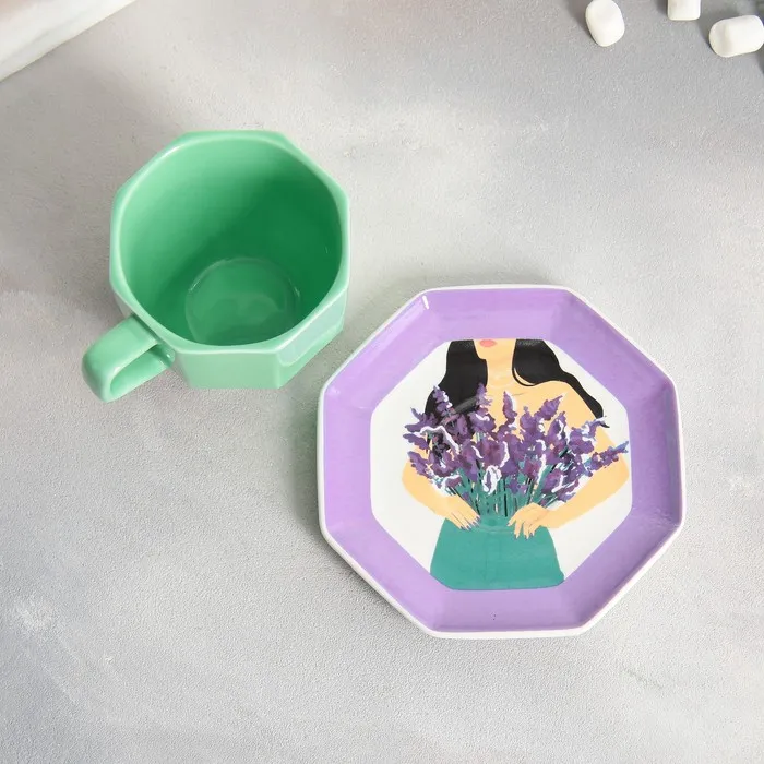 Чайная пара керамическая «Лаванда»: кружка 200 мл, блюдце 13 см