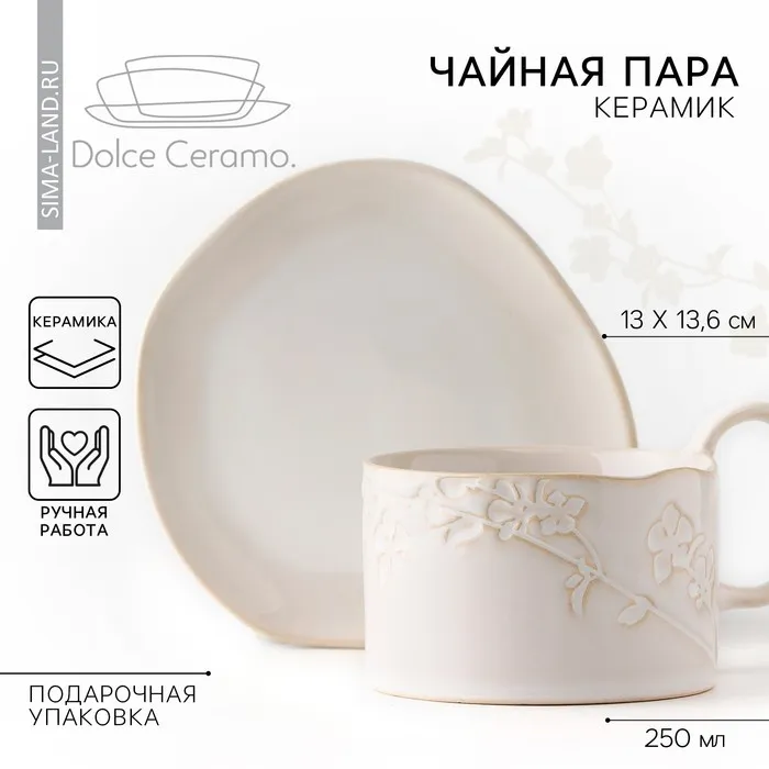 Чайная пара керамическая «Керамик», кружка 220 мл, блюдце 13×13.6 см, Dolce Ceramo