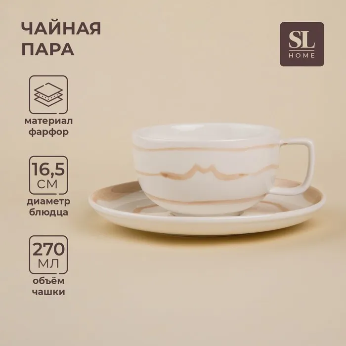 Чайная пара SL Home «Гато», 270 мл, фарфор, белая