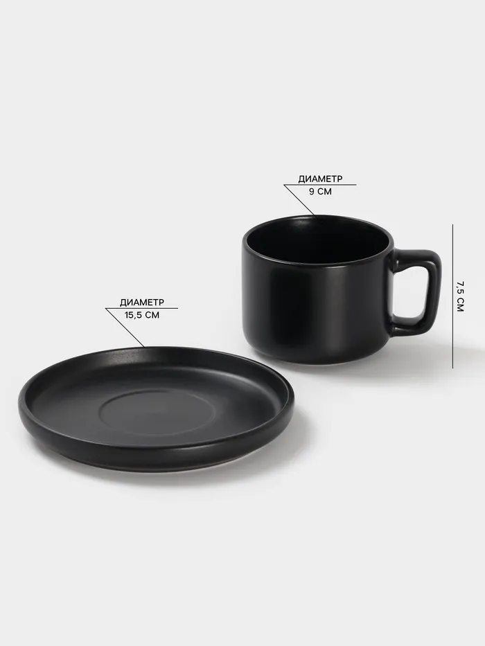 Чайная пара Доляна «Гранит», 2 предмета: чашка 270 мл, блюдце d=15.5 см, керамика, чёрная
