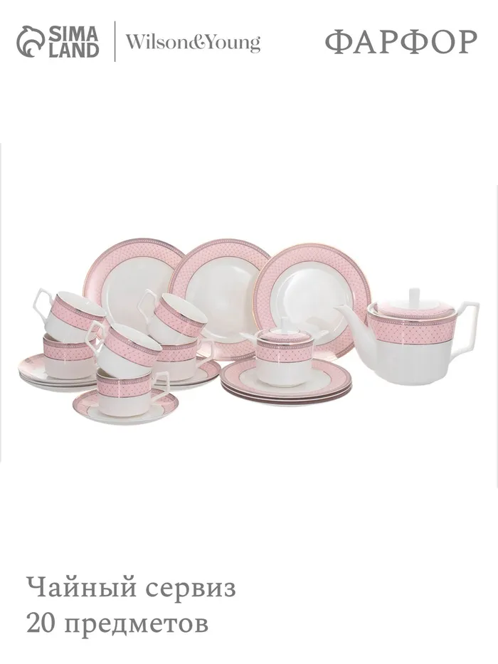 Чайный сервиз WY Eternal, 20 предметов, чайник 1 л, 6 кружек 250 мл, 6 блюдец, 6 тарелок пирожковых, фарфор