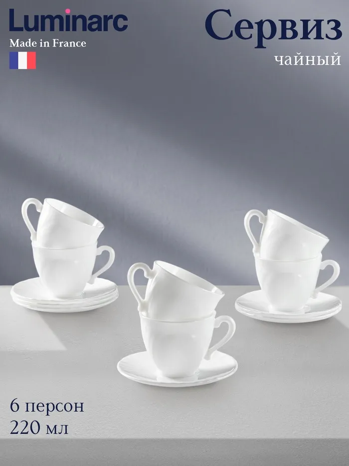 Чайный сервиз Luminarc CADIX, 220 мл, 6 персон, стеклокерамика, белый
