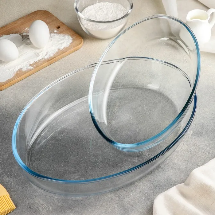 Формы для запекания Paşabahçe Borcam, 2 предмета: 2.5 л, 4.35 л, жаропрочное стекло, прозрачные