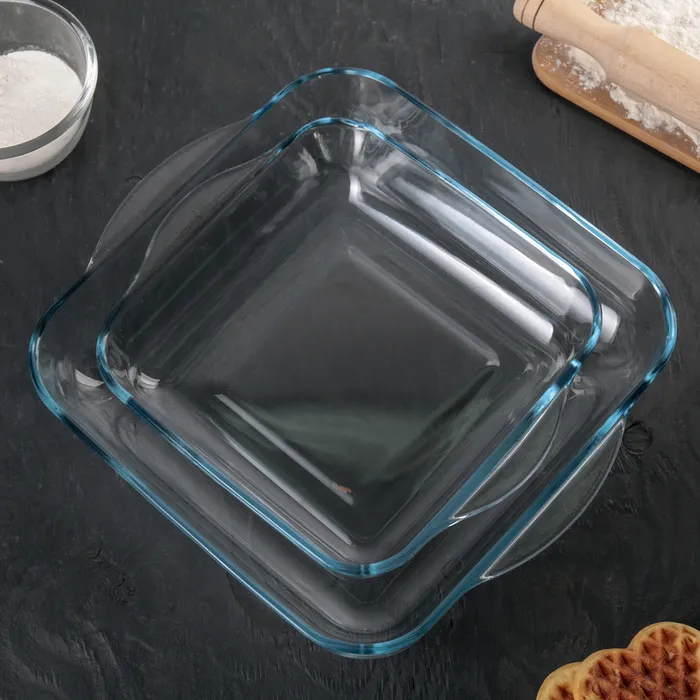 Набор квадратных форм из жаропрочного стекла для запекания Borcam, 2 предмета: 2 л, 3,5 л