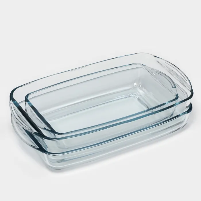 Формы для запекания Paşabahçe Borcam, 2 предмета: 1.6 л, 2.6 л, жаропрочное стекло, прозрачные