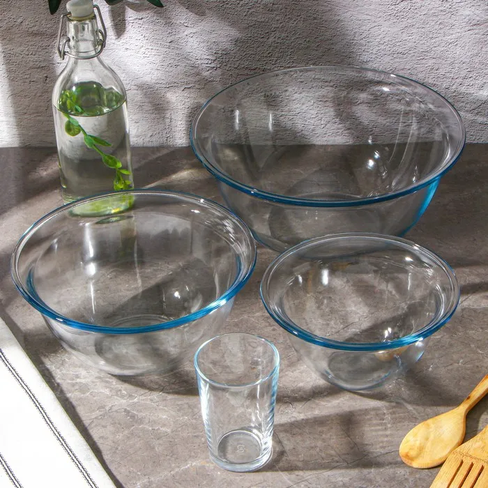 Формы для запекания Paşabahçe Borcam, 3 предмета: 1.5 л, 2.3 л, 3.2 л, жаропрочное стекло, прозрачные