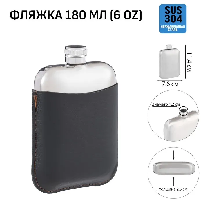Фляжка для алкоголя, нержавеющая сталь, чехол, подарочная, армейская, 180 мл, 6 oz