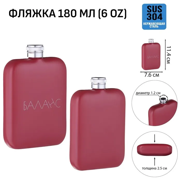Фляжка для алкоголя «Баланс», нержавеющая сталь, 180 мл, 6 oz