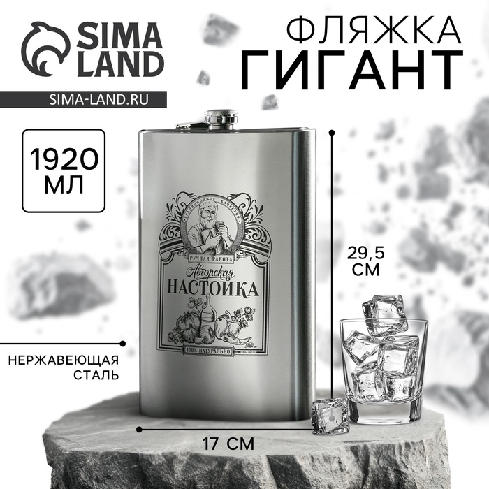 Фляжка ГИГАНТ «Авторская настойка», 1920 мл, серебристая