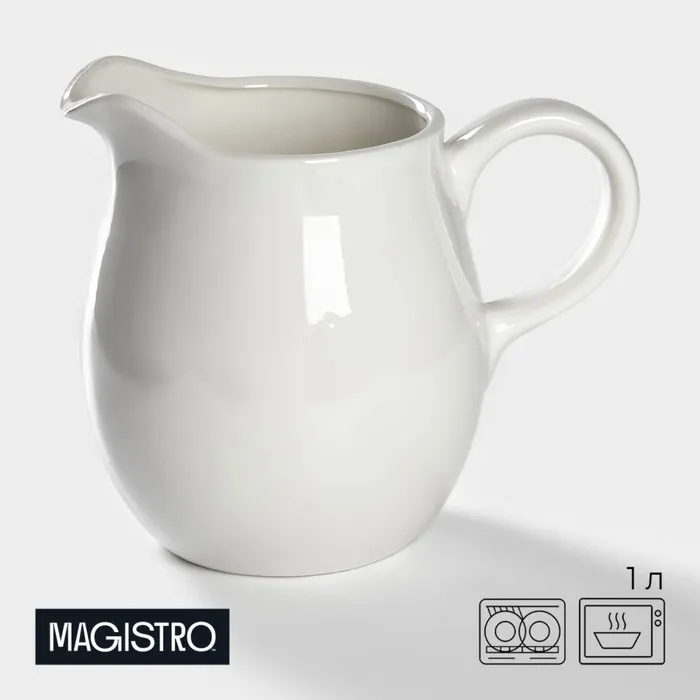 Кувшин для воды Magistro «Бланш», 1 л, 13×15 см, фарфор, белый