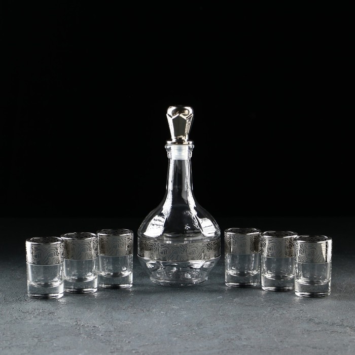 Набор питьевой Jungle, 7 предметов: графин 500 мл, стопка 6×50 мл, с гравировкой и напылением, цвет напыления серебряный