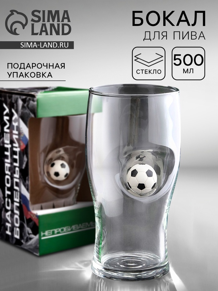 Бокал для пива с футбольным мячом «Непробиваемый», 500 мл