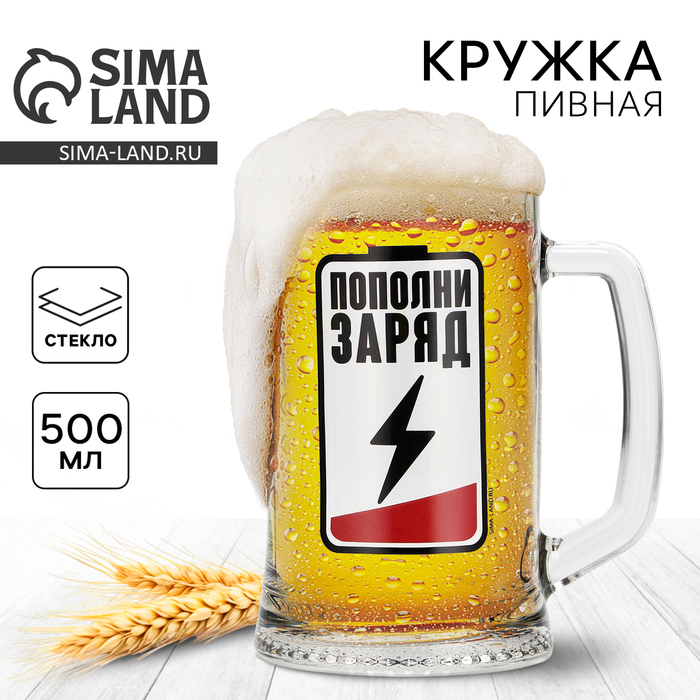 Кружка стеклянная пивная «Пополни заряд», 500 мл