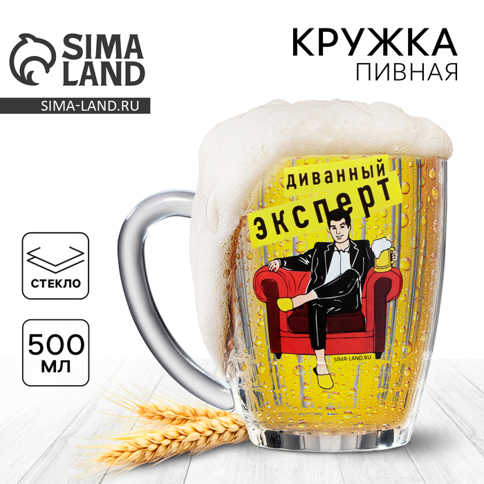Кружка стеклянная пивная Дорого внимание «Диванный эксперт», 500 мл